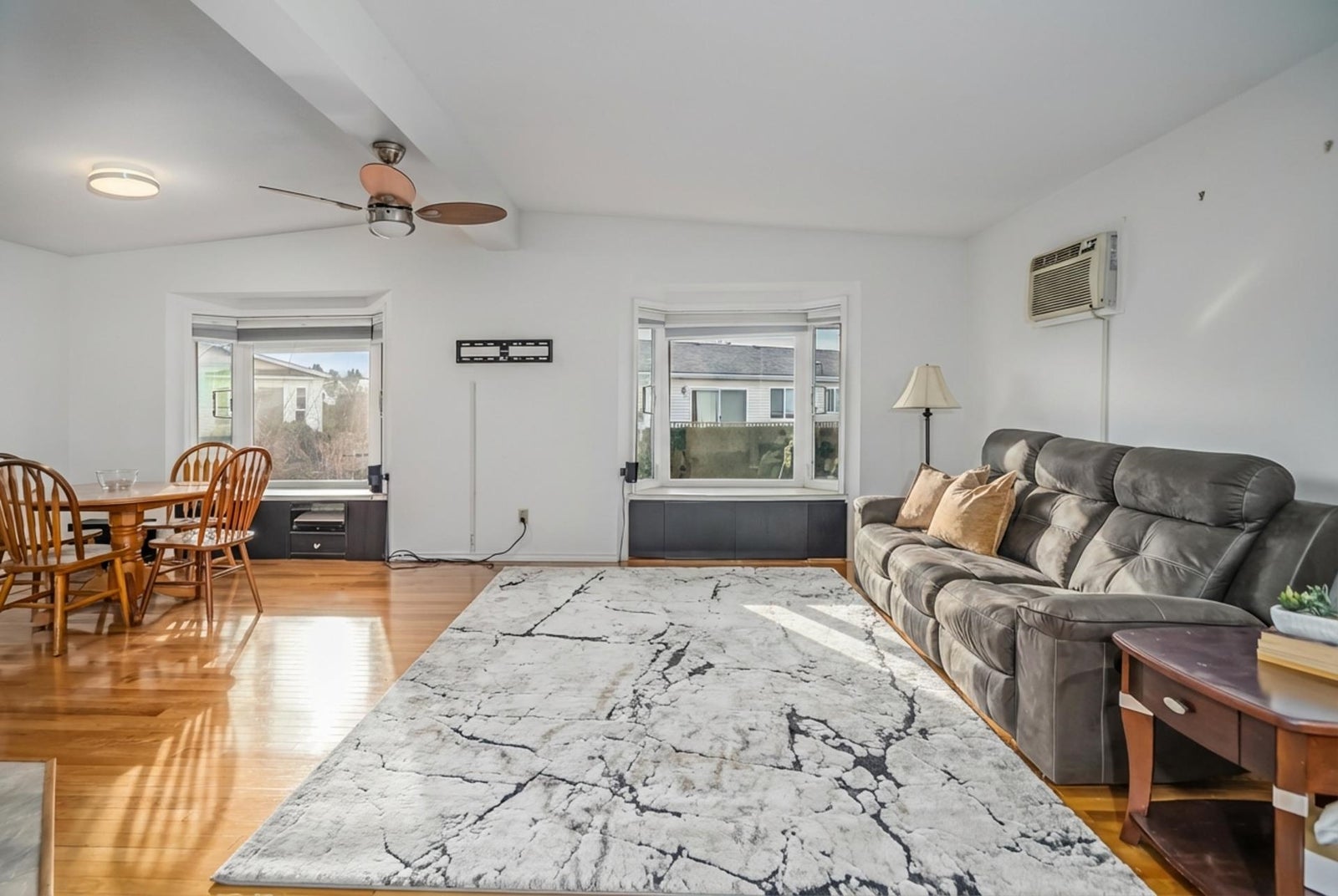 Well maintained 2-bedroom, 2-bathroom double-wide mobile home in Rainbow Community Estates. Stylish layout with abundant natural light, hardwood floors, updated windows, remodeled bathrooms, and a hot water tank. Features a bright, enclosed porch, ample storage, attached workshop, AC, and cozy fireplace for year-round comfort. Perfect for outdoor retreats in a 40+ community with no rentals allowed. Monthly fee is $495.00. Two pets allowed, with dogs up to 14" to the shoulders. Move-in ready and ideal for those seeking a peaceful and welcoming living environment. Quick Possession possible.