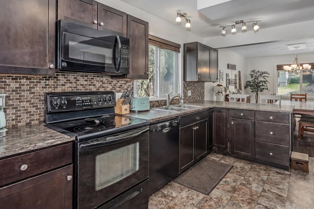 TWO homes in one—don’t let the exterior fool you! The main residence is a two-storey home offering 5 bedrooms, 2 bathrooms, a spacious upper rec room, and main-floor laundry with walkout access to a large, private sundeck. Attached is a 12-year-old, level-entry rancher-style addition (approx. 1,019 sq ft) featuring 2 bedrooms, 2 bathrooms, separate laundry, and a private, fenced patio. Ideal for extended family, in-law living, or mortgage helper potential. Property includes ample parking, two furnaces, two hot water tanks, a 5' crawl space for storage, and a garden shed. Conveniently located close to schools, shopping, and recreation.